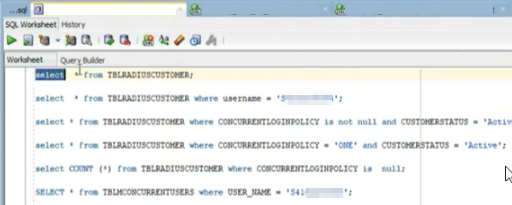 - Check the details in the TBLRADIUSCUSTOMER table using a SQL query.
